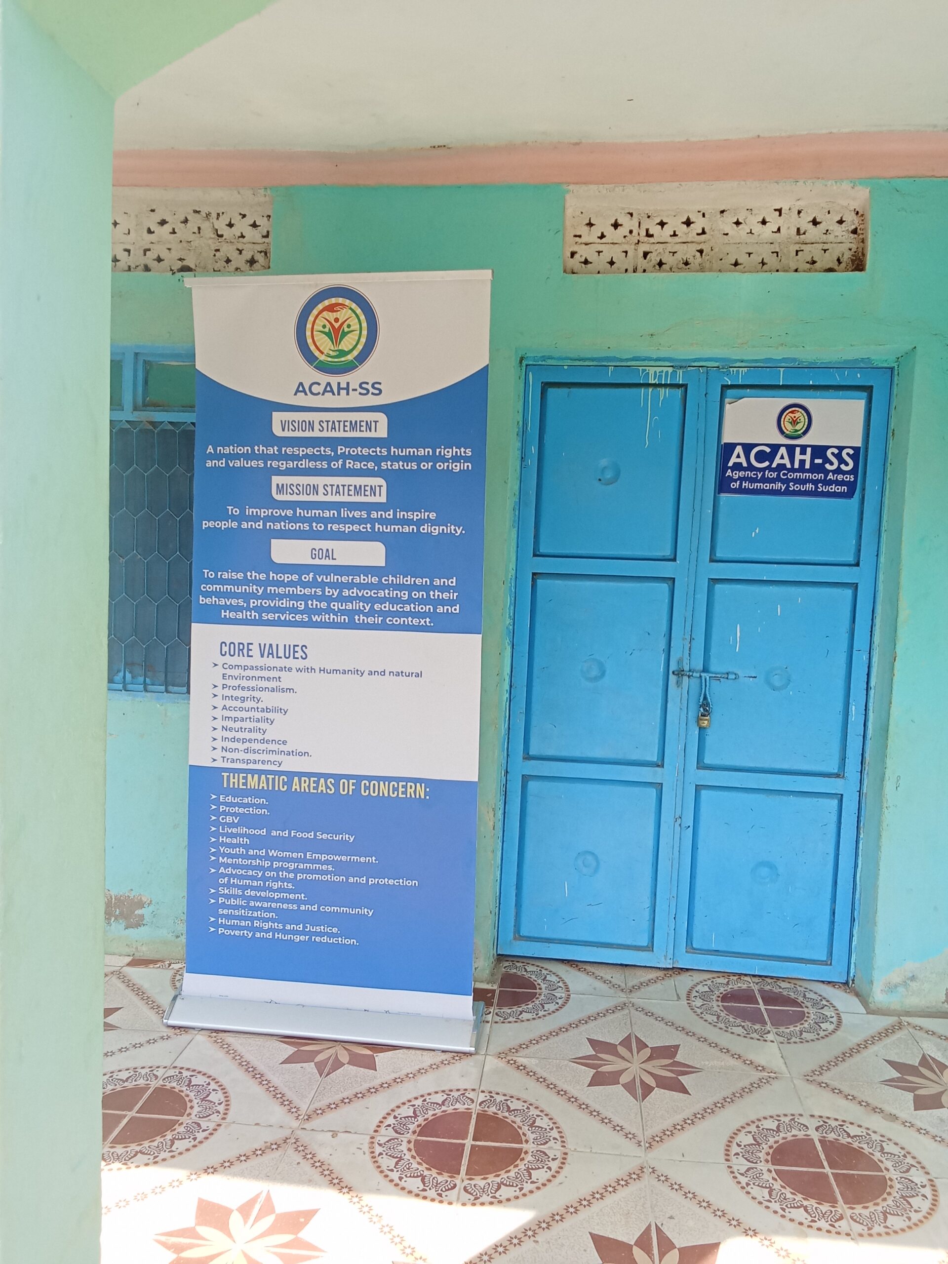 Agency for common Areas of Humanity South Sudan (ACAH-SS) is an independent, non-governmental and non-profitable social organization established by a group of like-minded Humanitarian workers with experiences in different sectors to intervene in the areas of protection, Education, health, food security and advocate on behalf of venerable and marginalize groups in South Sudan and elsewhere in the world.